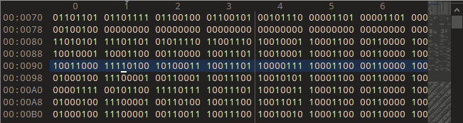 - 将鼠标光标放在十六进制编辑器窗口中的字节上,弹出提示将显示该位置的变量值