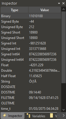 使用检查器可将二进制数据快速解释为多种不同数据类型。