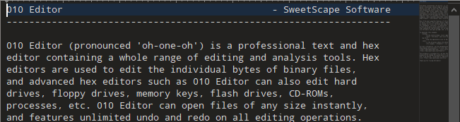 迷你地图是位于每个文本和十六进制编辑器右侧的概览图。